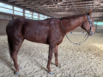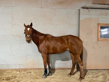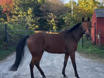 10 y/o mare, raced a bit ago and then was sent to a professional for training. Has been chilling doing nothing besides being a good girl. Can go any direction, would make a really nice barrel horse